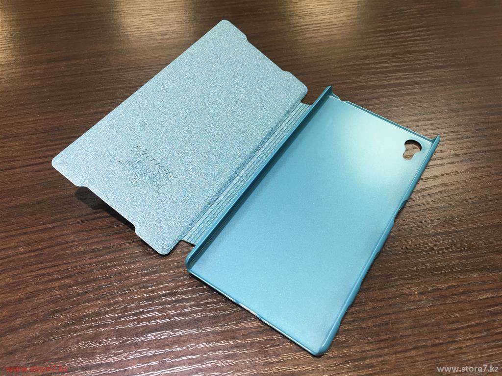 Голубой чехол-книжка Nillkin Sparkle Leather Case для смартфона Sony Xperia Z5: боковая книжка с прорезями для динамика, материал - винилискожа