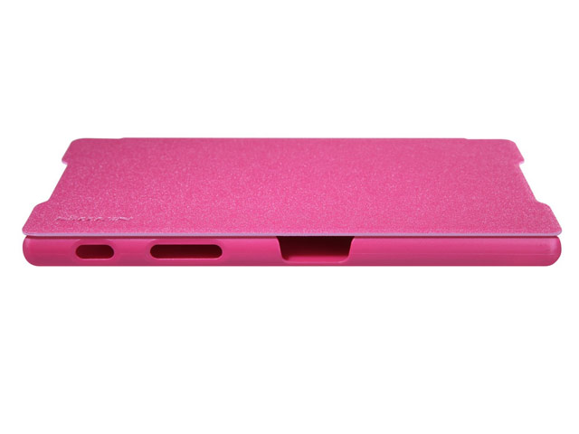 Розовый чехол-книжка Nillkin Sparkle Leather Case для смартфона Sony Xperia Z5 premium: боковая книжка с прорезями для динамика, материал - винилискожа