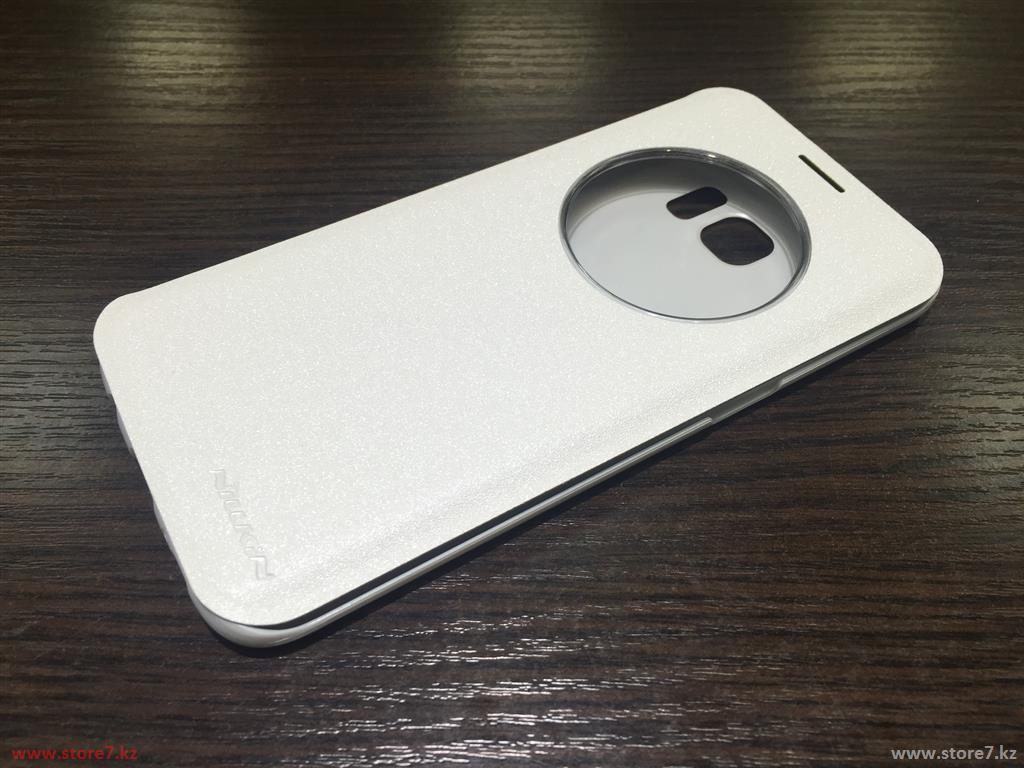Белый чехол-книжка Nillkin Sparkle Leather Case для смартфона Samsung Galaxy S7 edge: боковая книжка с прорезями для динамика и окошком, материал - винилискожа
