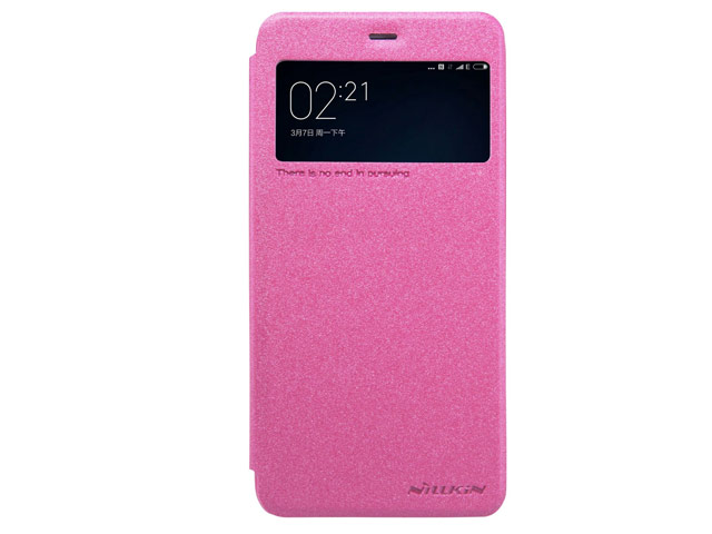 Розовый чехол-книжка Nillkin Sparkle Leather Case для смартфона Xiaomi Mi 5: боковая книжка с прорезями для динамика и окошком, материал - винилискожа