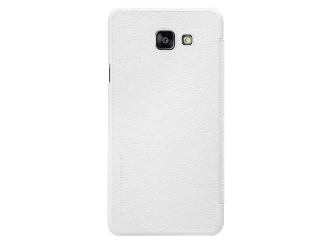Белый кожаный чехол боковая книжка Nillkin Qin leather case для смартфона Samsung Galaxy A7 2016 A710F (с прорезями для динамиков и окошком в крышке)