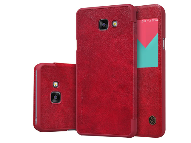 Красный кожаный чехол боковая книжка Nillkin Qin leather case для смартфона Samsung Galaxy A7 2016 A710F (с прорезями для динамиков и окошком в крышке)