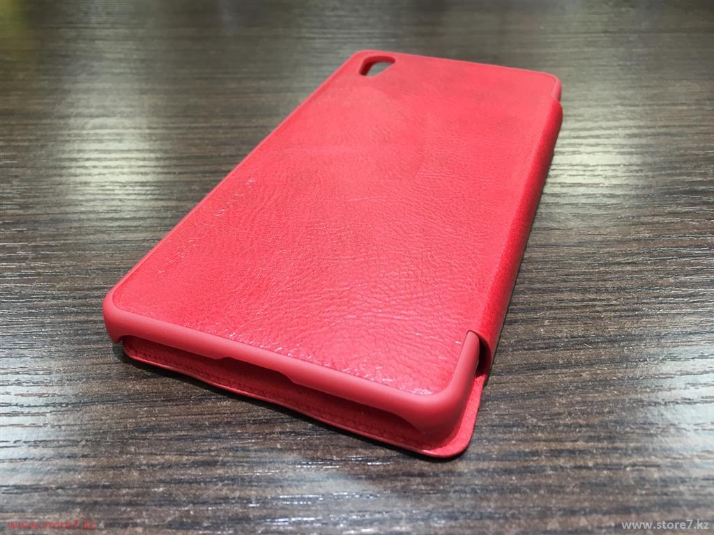 Красный кожаный чехол боковая книжка Nillkin Qin leather case для защиты смартфона Sony Xperia X Performance (с прорезями для динамиков в крышке)