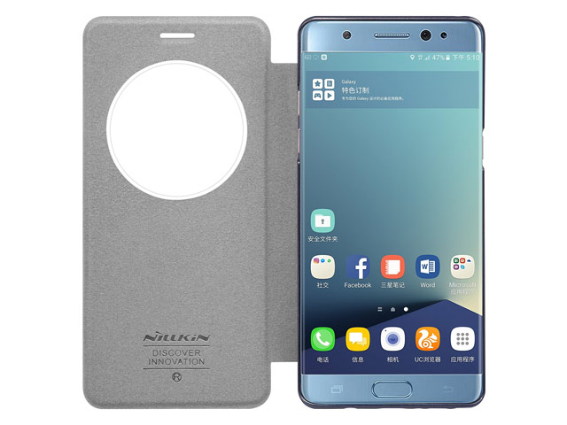 Темно-серый чехол-книжка Nillkin Sparkle Leather Case для смартфона Samsung Galaxy Note 7: боковая книжка с прорезями для динамика и окошком, материал - винилискожа