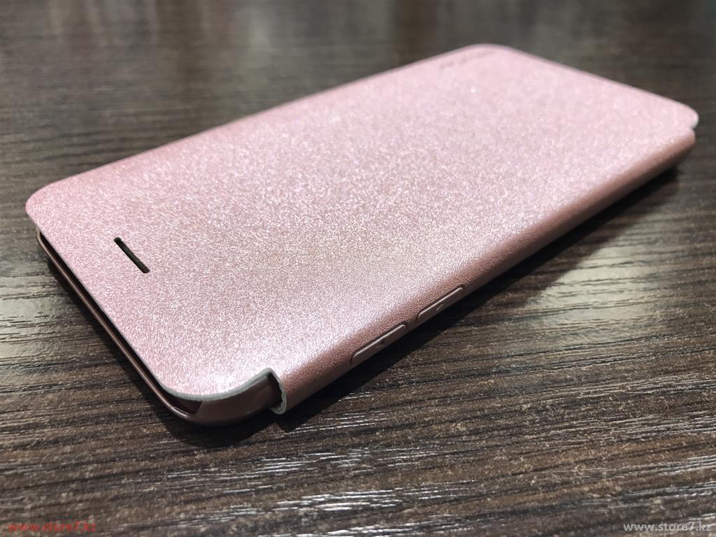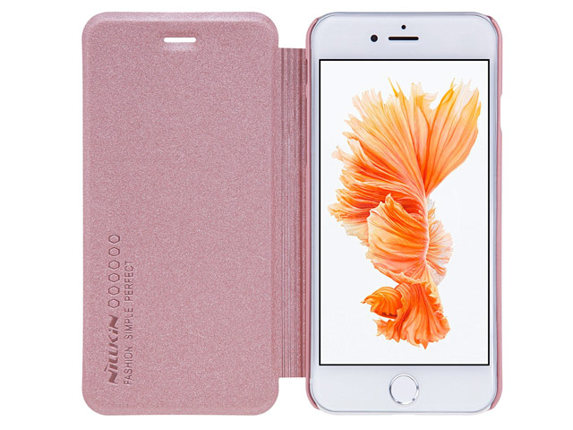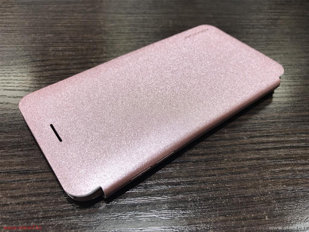Розово-золотистый чехол-книжка Nillkin Sparkle Leather Case для смартфона Apple iPhone 7 plus: боковая книжка с прорезями для динамика в крышке, материал - винилискожа