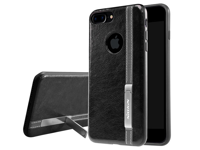 Стильный черный кожаный чехол Nillkin Phenom Case для защиты от ударов и царапин смартфона Apple iPhone 7 plus (встроенная подствака для вертикальной и горизонтальной установки телефона)