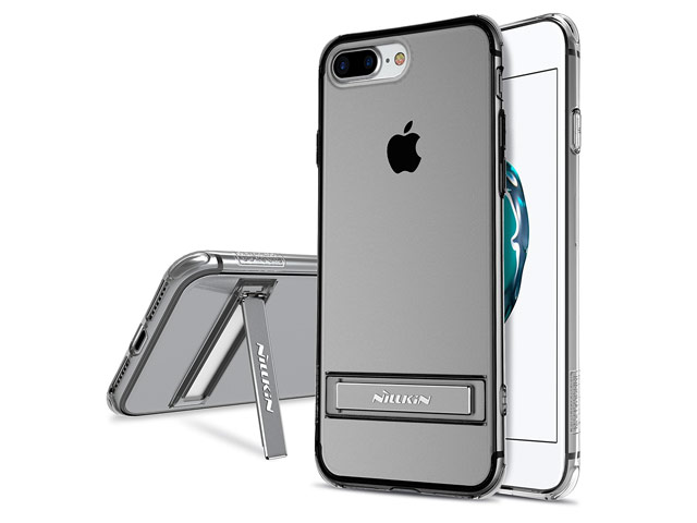 Серый полупрозрачный усиленный противоударный гелевый чехол с подставкой Nillkin Crashproof II case для защиты смартфона Apple iPhone 7 plus
