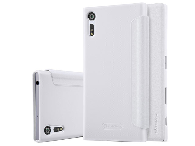 Белый чехол-книжка Nillkin Sparkle Leather Case для смартфона Sony Xperia XZ: боковая книжка с прорезями для динамика, материал - винилискожа