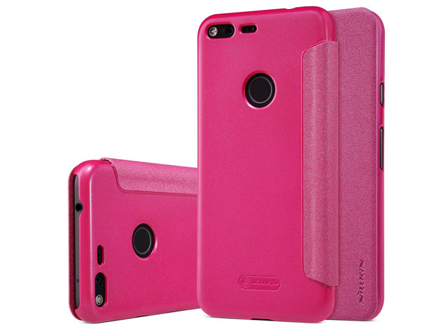 Розовый чехол-книжка Nillkin Sparkle Leather Case для смартфона Google Pixel: боковая книжка с прорезями для динамика, материал - винилискожа