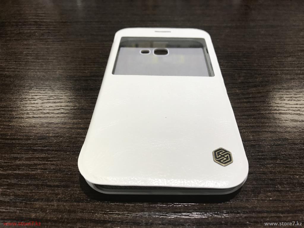 Белый кожаный чехол боковая книжка Nillkin Qin leather case для защиты смартфона Samsung Galaxy A7 2017 (с прорезями в крышке для динамиков)