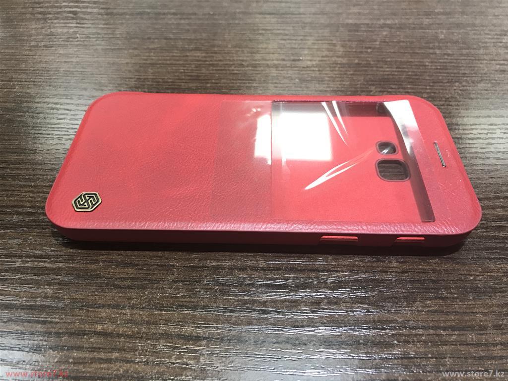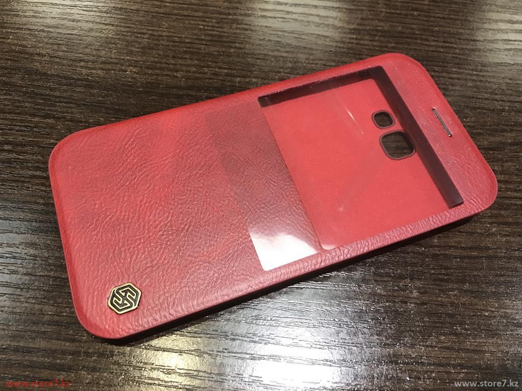 Красный кожаный чехол боковая книжка Nillkin Qin leather case для защиты смартфона Samsung Galaxy A7 2017 (с прорезями в крышке для динамиков)