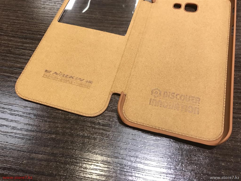 Коричневый кожаный чехол боковая книжка Nillkin Qin leather case для защиты смартфона Samsung Galaxy A7 2017 (с прорезями в крышке для динамиков)