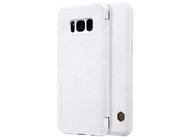 Белый кожаный чехол боковая книжка Nillkin Qin leather case для защиты смартфона Samsung Galaxy S8 (с прорезями для динамиков в крышке)