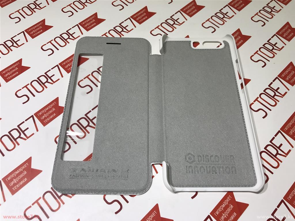 Белый кожаный чехол боковая книжка Nillkin Qin leather case для защиты смартфона Huawei P10 (с прорезями для динамиков и окошком в крышке)