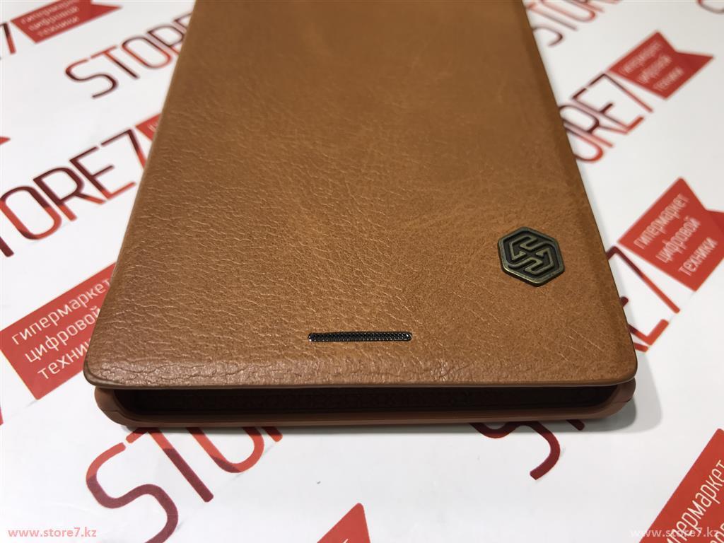 Коричневый кожаный чехол боковая книжка Nillkin Qin leather case для смартфона Sony Xperia XZs (с прорезями для динамиков и окошком в крышке)