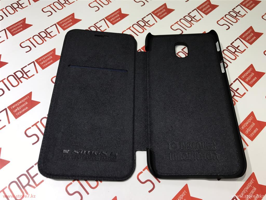 Черный кожаный чехол боковая книжка Nillkin Qin leather case для защиты смартфона Samsung Galaxy J5 2017 (с прорезями для динамиков в крышке)