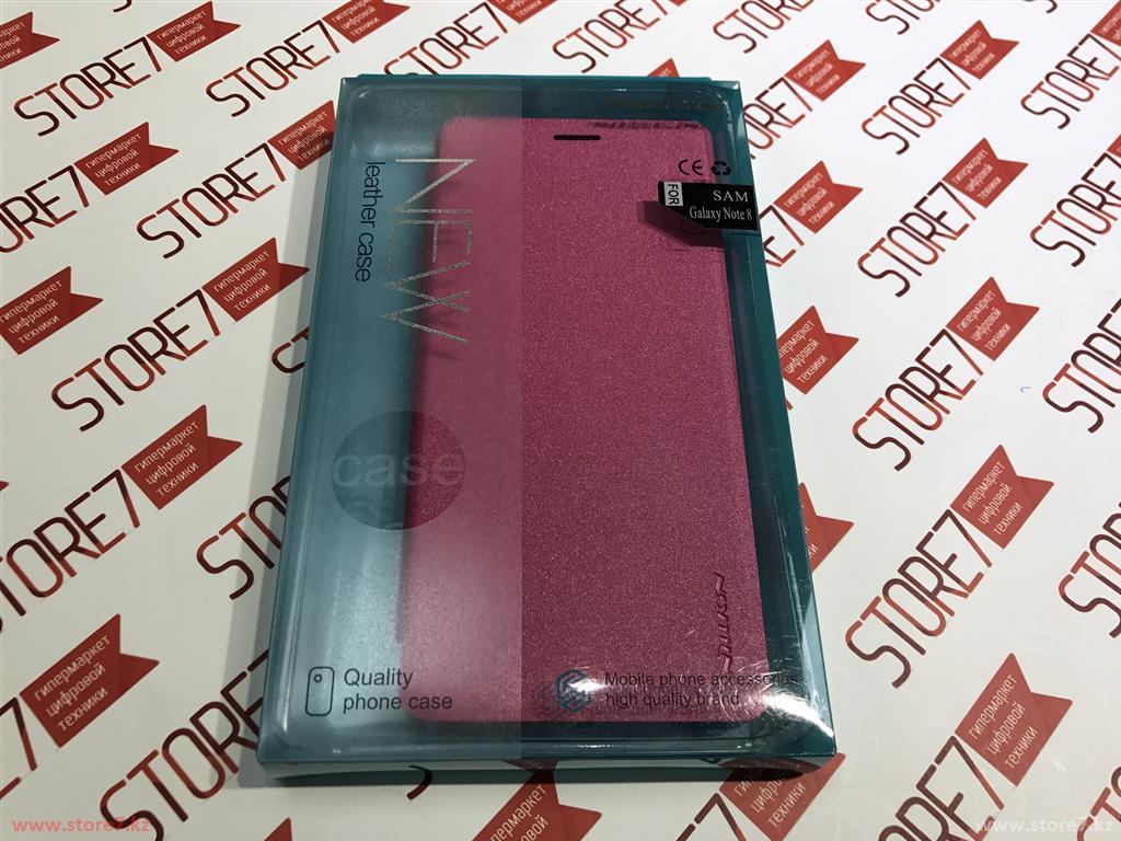 Розовый чехол-книжка Nillkin Sparkle Leather Case для смартфона Samsung Galaxy Note 8: боковая книжка с прорезями для динамика в крышке, материал - винилискожа