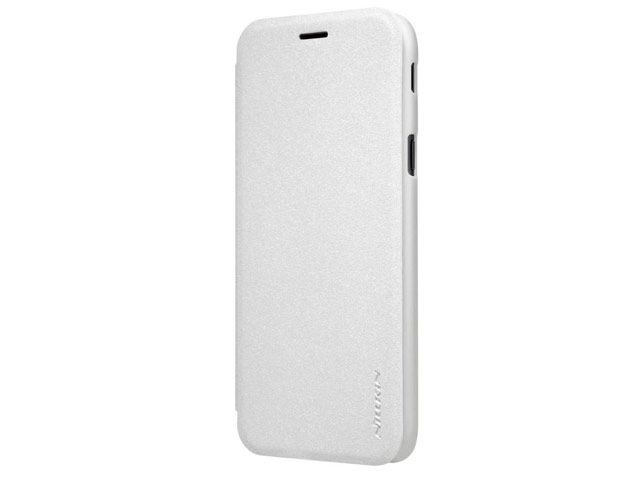 Белый чехол-книжка Nillkin Sparkle Leather Case для смартфона Samsung Galaxy J7 2017: боковая книжка с прорезями для динамика, материал - винилискожа