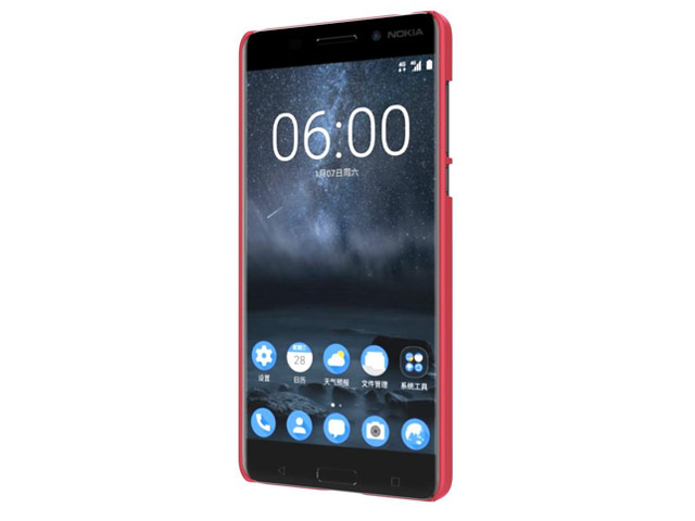 Красный пластиковый чехол Nillkin Super Frosted Shield для защиты смартфона Nokia 6 (в комплекте глянцевая защитная пленка на экран)