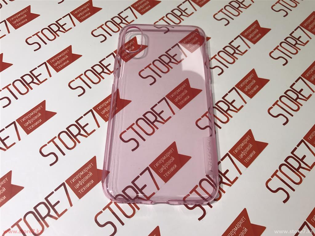 Розовый полупрозрачный ультра-тонкий гелевый чехол Nillkin Nature case для защиты смартфона Apple iPhone X