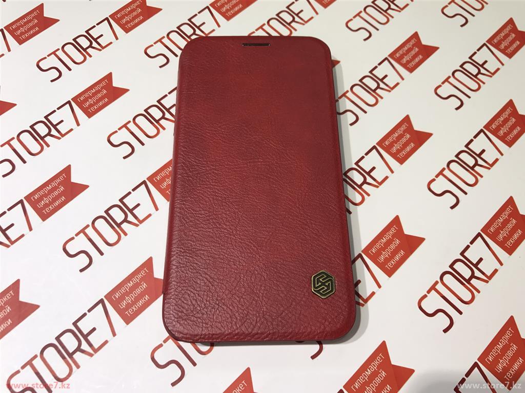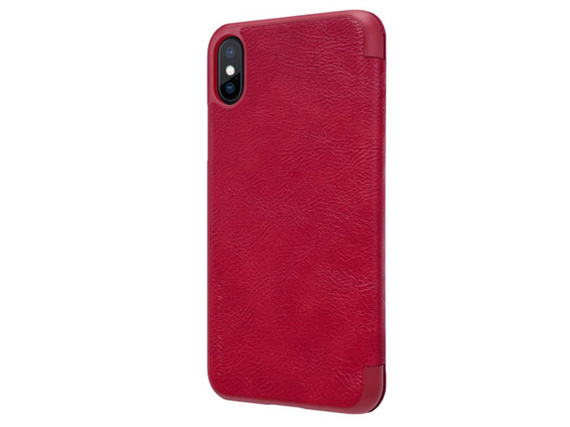 Красный кожаный чехол боковая книжка Nillkin Qin leather case для защиты смартфона Apple iPhone X (с прорезями в крышке для динамиков)