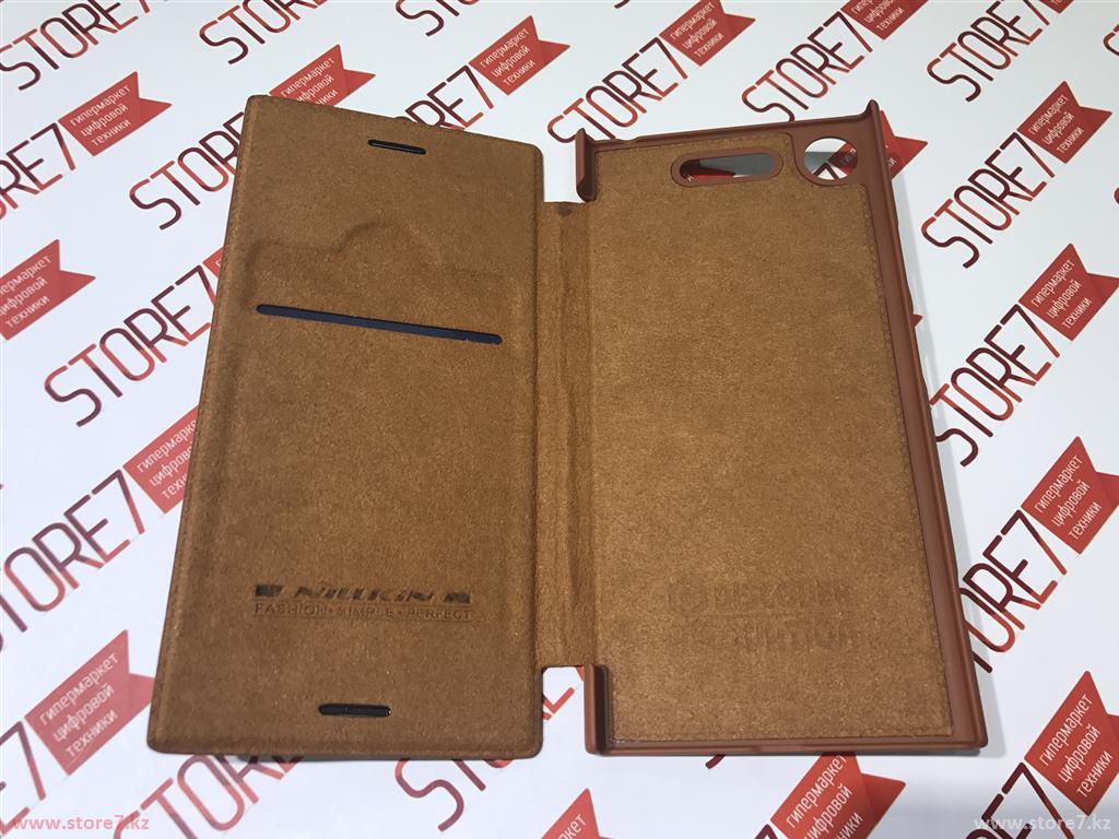 Коричневый кожаный чехол боковая книжка Nillkin Qin leather case для защиты смартфона Sony Xperia XZ1 (с прорезями в крышке для динамиков)