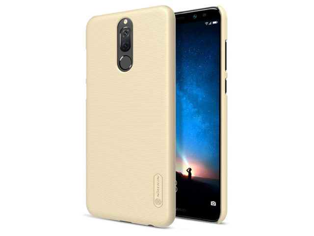 Золотистый пластиковый чехол Nillkin Super Frosted Shield для защиты смартфона Huawei Mate 10 lite (в комплекте глянцевая защитная пленка на экран)