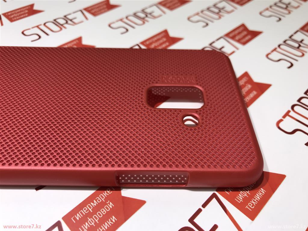 Красный перфорированный пластиковый чехол Nillkin Air case для защиты смартфона Samsung Galaxy A8 plus 2018