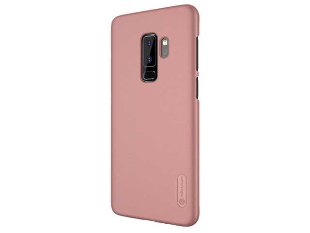 Розово-золотистый пластиковый чехол Nillkin Super Frosted Shield для защиты смартфона Samsung Galaxy S9 plus (в комплекте глянцевая защитная пленка на экран)