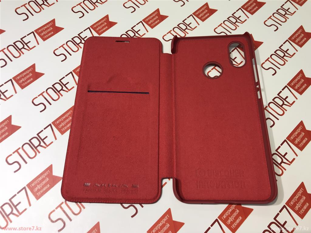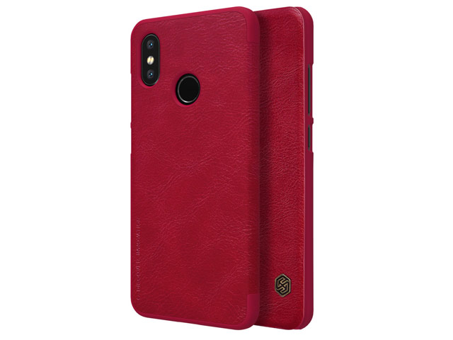 Красный кожаный чехол боковая книжка Nillkin Qin leather case для защиты смартфона Xiaomi Mi 8 (с прорезями для динамиков в крышке)