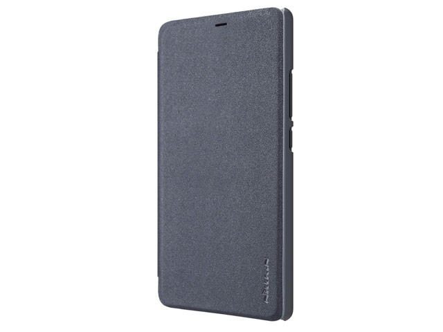Темно-серый чехол-книжка Nillkin Sparkle Leather Case для смартфона Xiaomi Mi 8 SE: боковая книжка с прорезями для динамика в крышке, материал - винилискожа