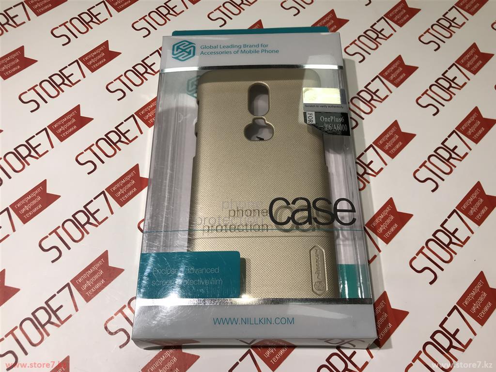 Золотистый пластиковый чехол Nillkin Super Frosted Shield для защиты смартфона OnePlus 6 (в комплекте глянцевая защитная пленка на экран)