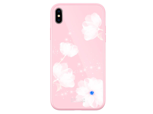 Розовый стеклянный чехол с гелевым каркасом Nillkin Tempered Plaid case для защиты смартфона Apple iPhone XS max (гелевый каркас, стеклянная вставка со степенью закалки 9H)