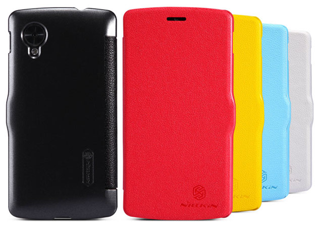 Голубой кожанный чехол-книжка (боковая) Nillkin Fresh Series Leather case для LG Google Nexus 5