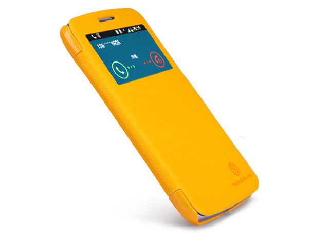 Желтый кожанный чехол-книжка (боковая) Nillkin Fresh Series Leather case для смартфона Samsung Galaxy Grand 2 G7106
