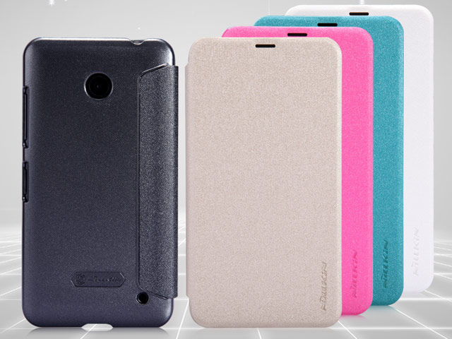 Золотистый кожаный чехол-книжка Nillkin Sparkle Leather Case для Nokia Lumia 630 (с прорезями для динамиков в крышке)