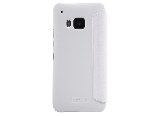 Белый чехол-книжка Nillkin Sparkle Leather Case для смартфона HTC One M9: боковая книжка с прорезями для динамика и окошком для просмотра номера звонящего, материал - винилискожа