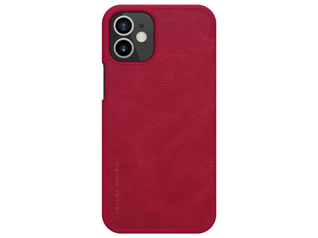 Стильный кожаный чехол Nillkin Qin leather case для защиты смартфона Apple iPhone 12 mini: чехол - боковая книжка, прорези для динамиков в крышке, в крышке слот для кредитной карточки